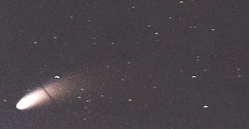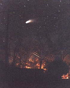 There were two factors which led to the Heaven's Gate cult's belief that their UFO was in the tail of Hale-Bopp. The first came from Courtney Brown, a professor at Amory University who claims to be a "scientific remote viewer." Remote viewers are used by the military (especially the Communist military) to look into buildings and locations where eye and spy cannot go. From Brown originate the "knowledge" of underground Martian cities, and the speculations of the "face" on Mars, not to mention the "ruined cities" on the moon. It was this same Brown who "scientifically remote-viewed" a UFO four times the size of the earth, packed with aliens, accompanying Hale-Bopp. Sound reasonable? Only if the aliens have a "cloaking" device, for the nucleus of the comet (the obscure part) is only about 20 miles in size and the rest of it, the coma, is transparent. The comet is less distant from us than Mars and so any ship four times the size of the earth should be visible to the naked eye, let alone by telescope.